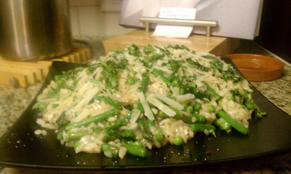 Risotto can be tricky and can make you think it is a feat, but really it just takes effort and knowledge. NEVER add cream to your risotto, risotto gains its creamy texture from the breakdown of proteins around the rice. Every step of making risotto is vital in breaking these down (toasting, stirring, warm liquid being added in small amounts, more stirring, etc). So be patient, and cook with love. The end result of risotto is a rich, creamy, comfort food that is hard not to want to make every night. A good risotto will expand on your plate when you spoon it down. Just FYI.