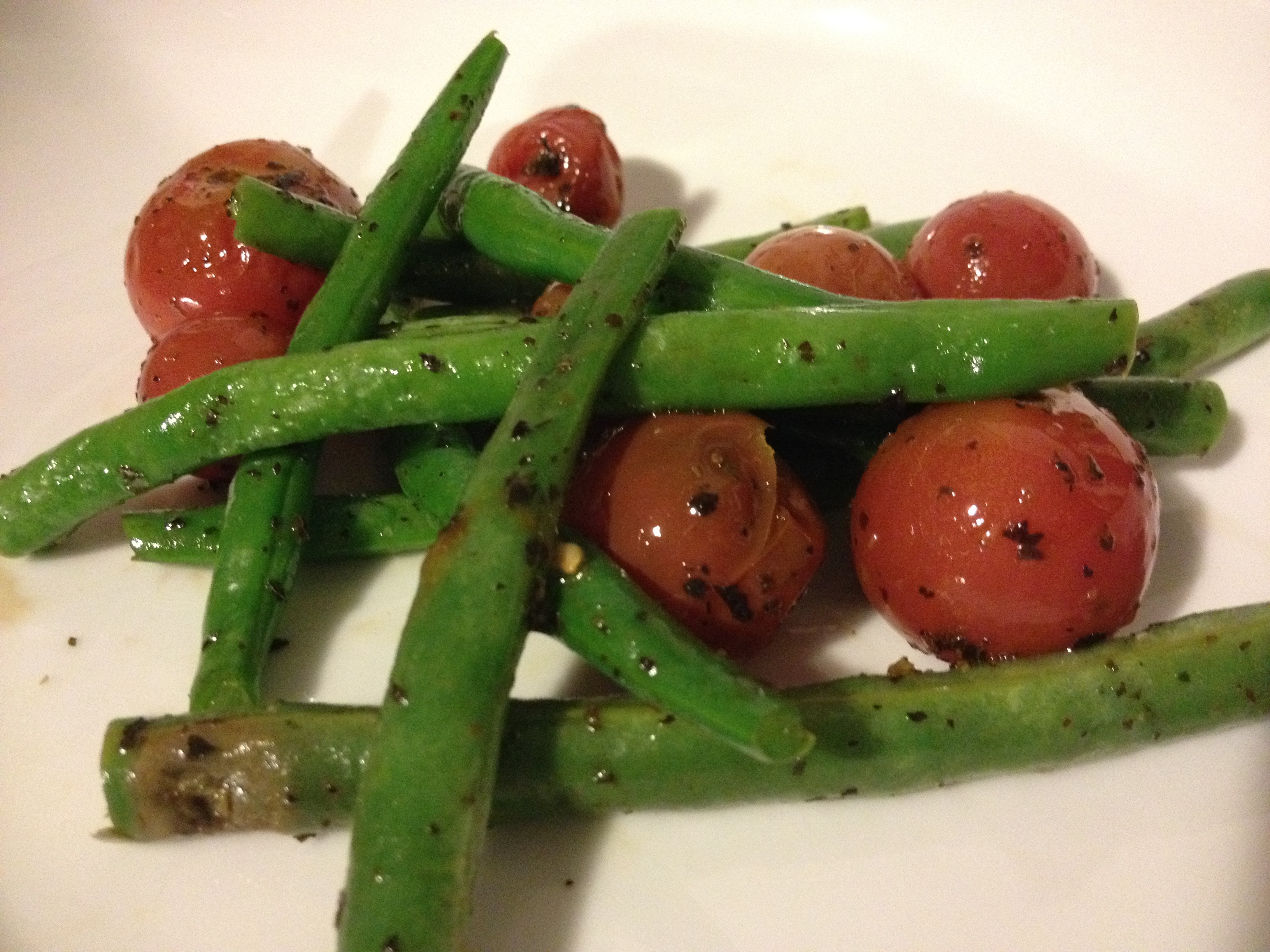 My idea of a perfect snack is a big bowl of steamed green beans. I really love green beans. My favorite way to eat them is actually the most boring: steamed and absolutely naked save a squeeze of lemon juice. Strange coming from a flavor freak/chili belly like me. I blame my true-to-form Gemini personality! This side dish (or snack) is incredibly simple, irresistibly tasty, and EASY. The key to maxing out the flavor and, thus, satisfaction is to buy fresh veggies, preferably from your local farmer’s market, and use the best oil and vinegar you can get your hands on. It sounds cliché, but the best food really does come from the best ingredients.